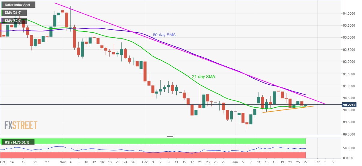 On the contrary, the fresh downside will have to break below the 90.13 support confluence and 90.00 round-figure to recall the US dollar bears.