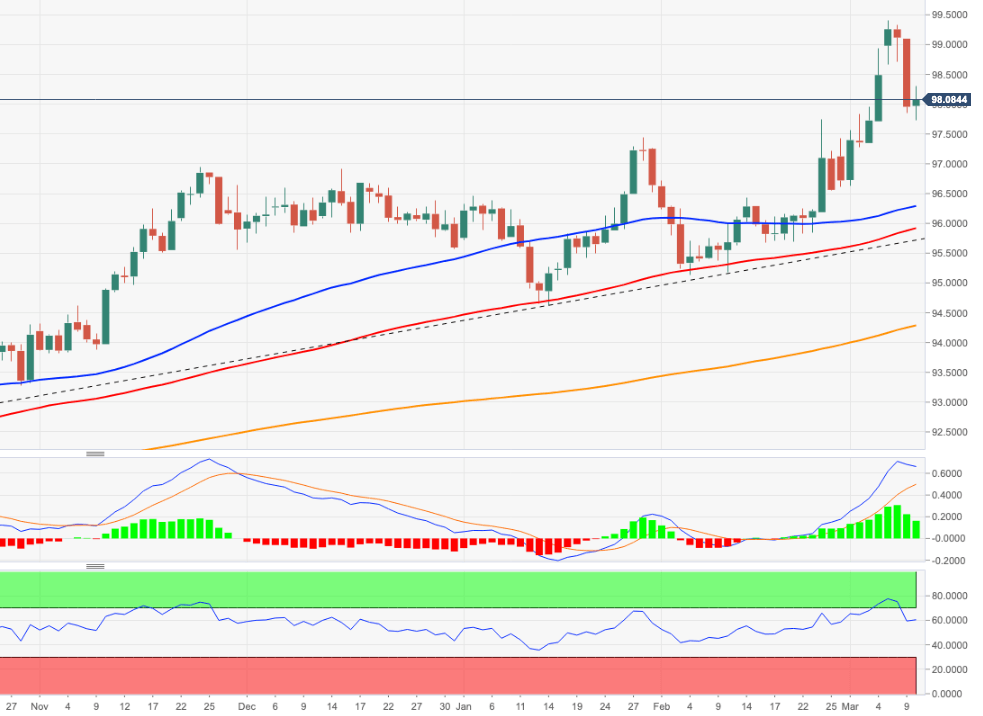 - DXY regains some composure and reclaims the 98.00 mark and above.