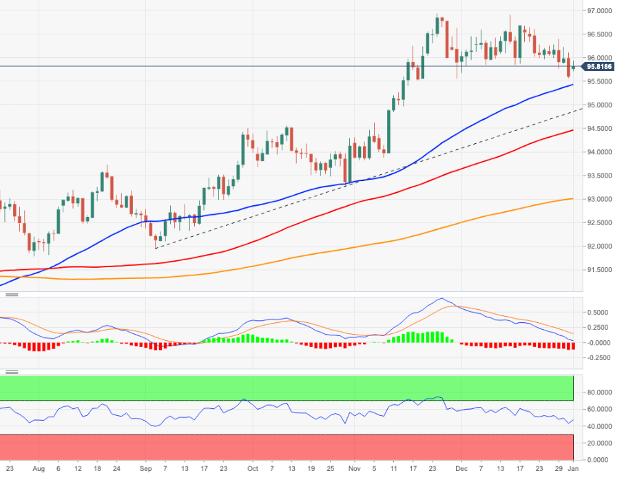The recent corrective downside in DXY seems to have met some decent contention in the 95.50 region.