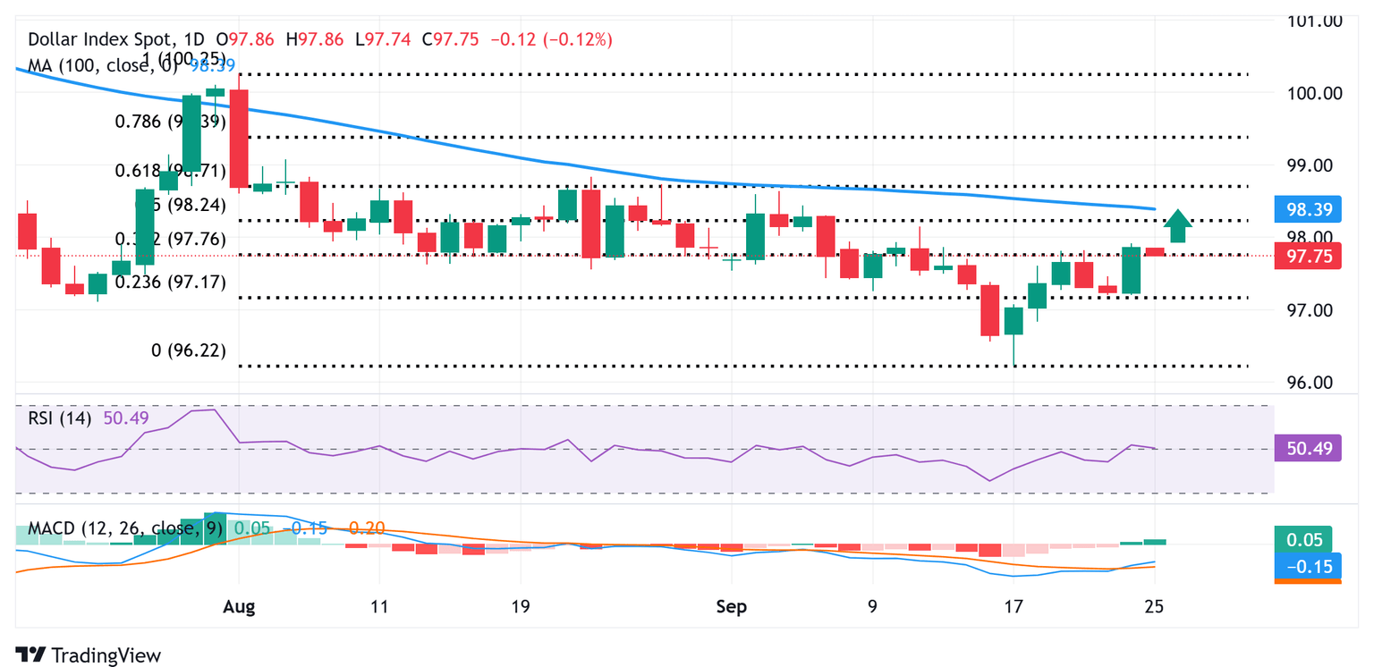 US Dollar Index Price Forecast: DXY eases from two-week high, dips to 97.75/38.2% Fibo.