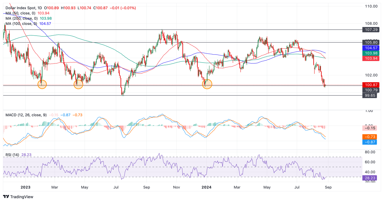 - The US Dollar Index has touched down on a key support level at the 100 mark.