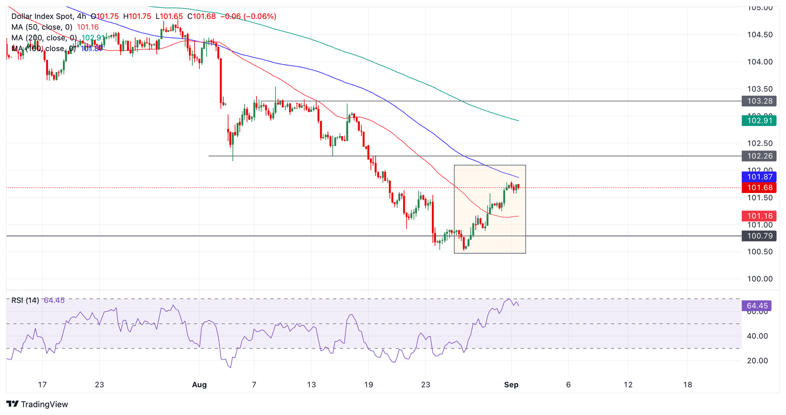 Given “the trend is your friend” this could indicate the evolution of higher highs, with the next target at the 102.26 level (August 14 low).