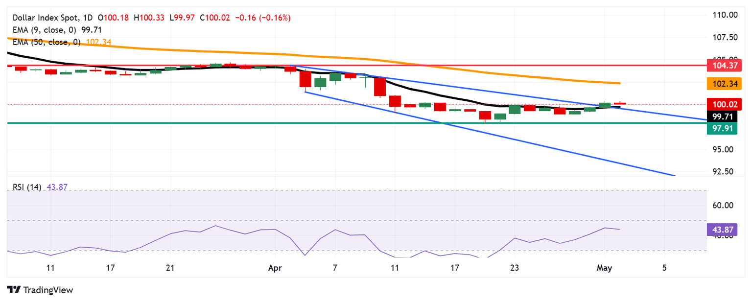 On the downside, immediate support is seen at the nine-day EMA of 99.71, aligned with the upper boundary of the descending channel. A successful return to the channel could revive the bearish bias and put the downward pressure on the DXY to navigate the region around 97.91 — the lowest level since March 2022, which was recorded on April 21. A break below this level could reinforce the bearish bias and put downward pressure on the US Dollar Index to approach the lower boundary of the descending channel around the 93.50 level.