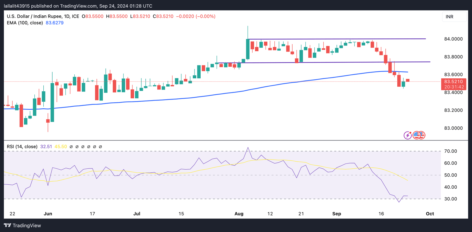 The US Dollar Index (DXY) remains on the defensive near 100.35 during the early European session on Wednesday. The improved risk appetite following the fresh Chinese stimulus plans and rising bets on a jumbo interest rate reduction from the US Federal Reserve (Fed) in November weigh on the DXY. The US New Home Sales data for August will be published later on Wednesday. Traders also await the Fed’s Governor Adriana Kugler speech for fresh impetus.