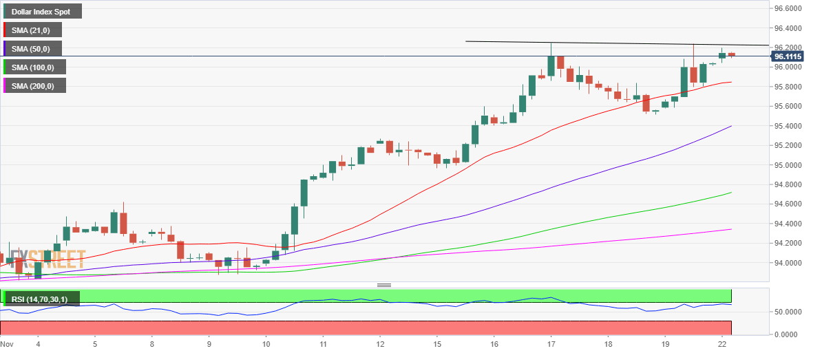 US Dollar Index recedes from stiff resistance near 96.25 amid risk reset
