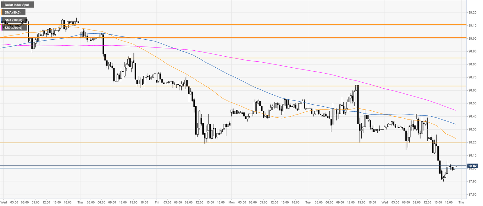 DXY is trading below the main SMAs, suggesting a bearish bias in the short term. Resistances are seen at the 98.20 and 98.63 levels. Bulls would need to have a daily close above the 98.63 resistance to alleviate the current bearish pressure.