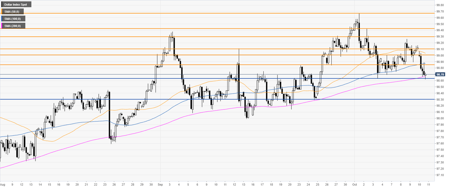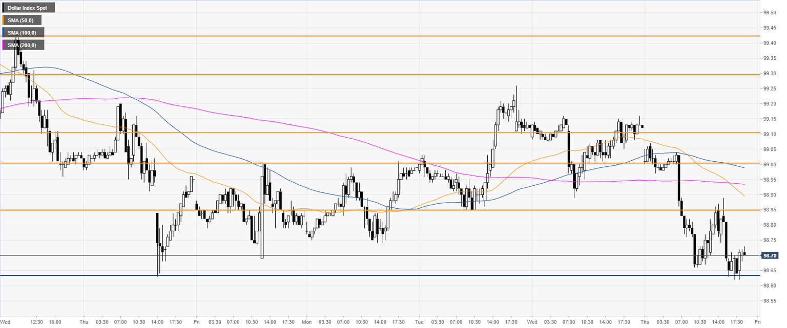 DXY is trading below its main SMAs, suggesting a bearish momentum in the near term. Resistances are seen at the 98.85 and 99.00 price levels.