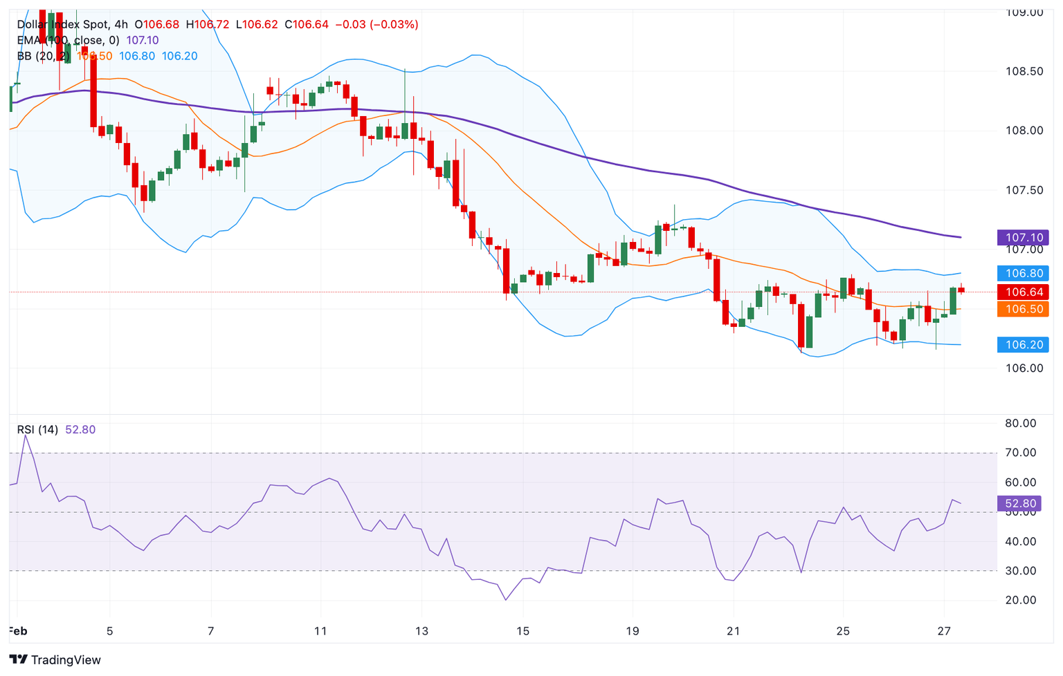 On the upside, the first upside barrier for the DXY emerges at 106.80, the upper boundary of the Bollinger Band. Sustained bullish momentum above this level could pave the way to the 107.00-107.10 region, the psychological level and the 100-EMA EMA. The next hurdle to watch is 107.38, the high of February 19.
