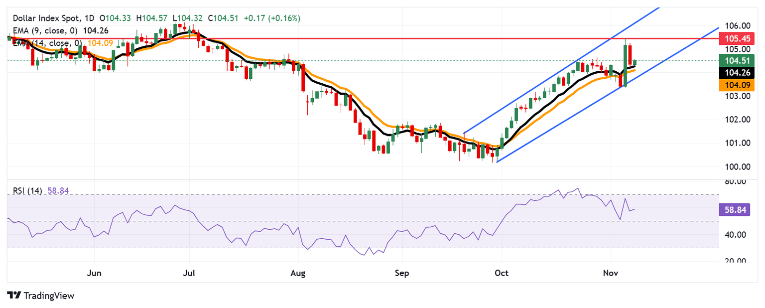 US Dollar Price Forecast: Hovers around 104.50, remains above nine-day EMA
