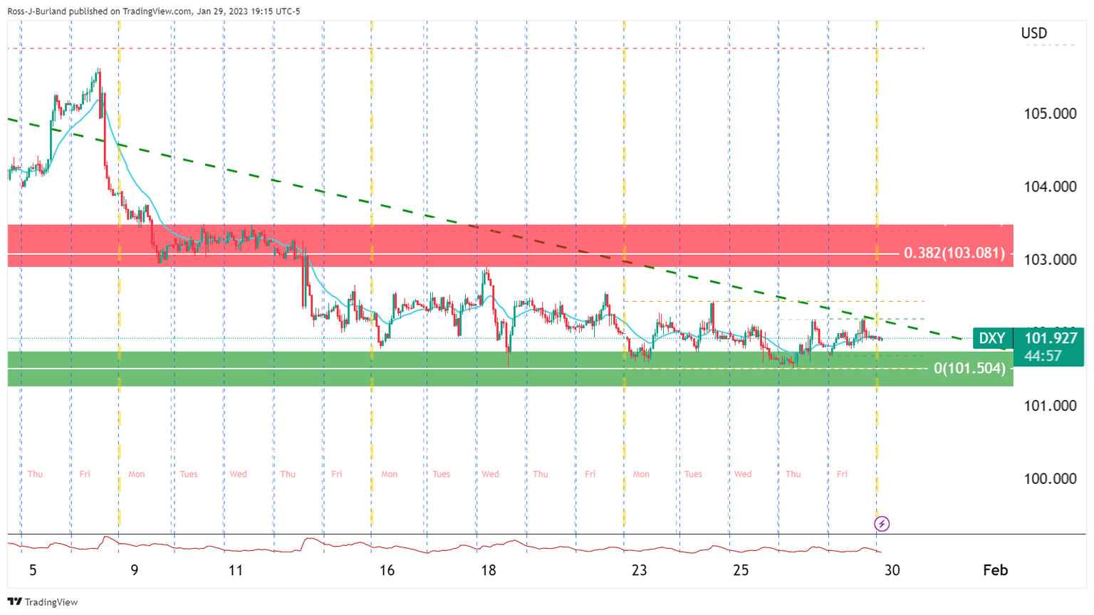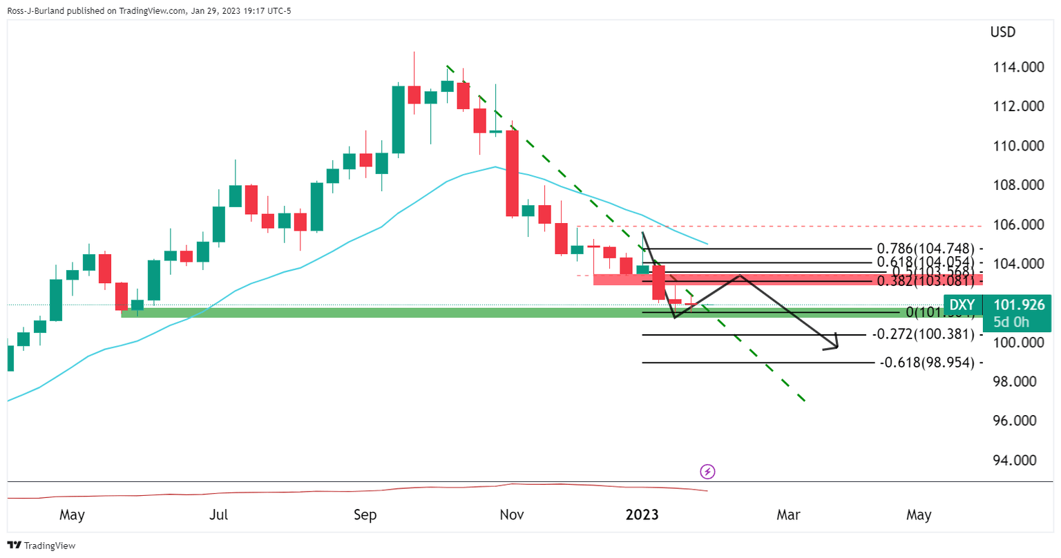 - DXY bulls eye102.50 that guard 103.00 and a 38.2% Fibonacci retracement of the weekly bearish impulse.