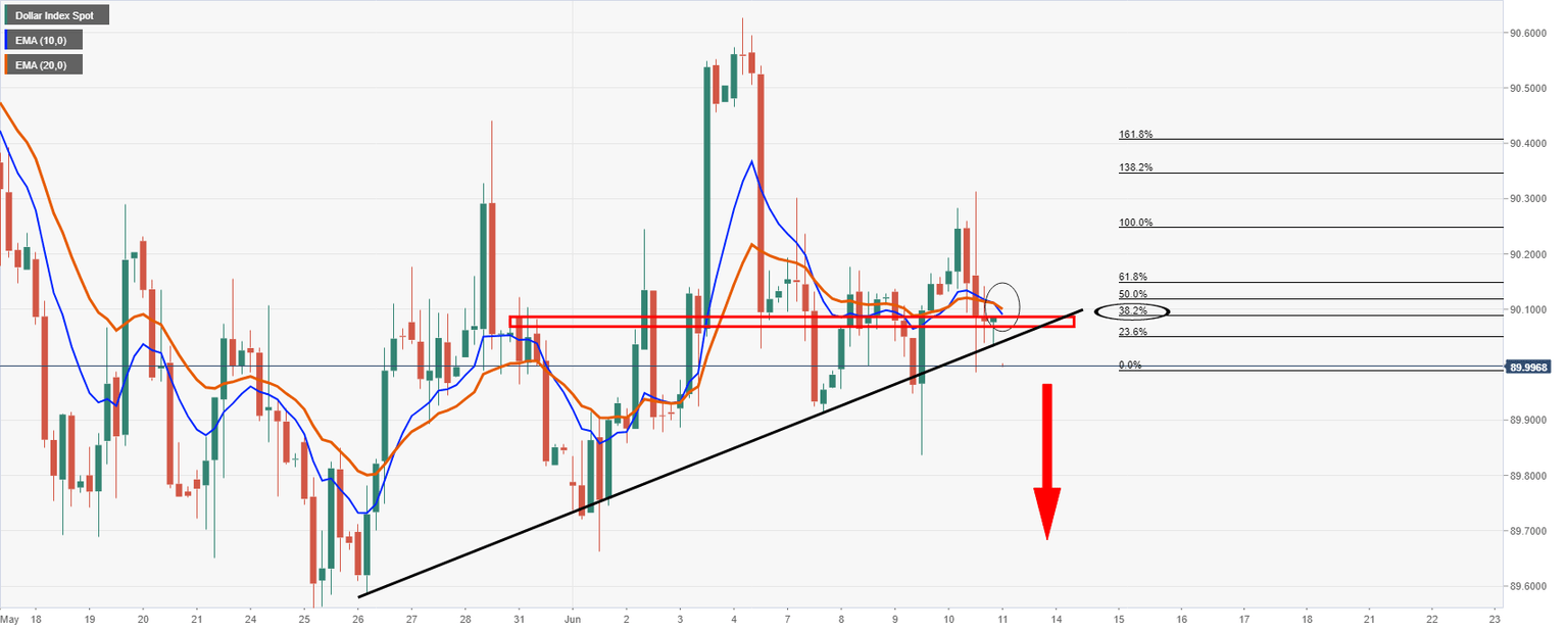 The Fed is in focus for next week and the dollar keeps sliding, now trading below a significantly bearish development on the 4-hour time frame: