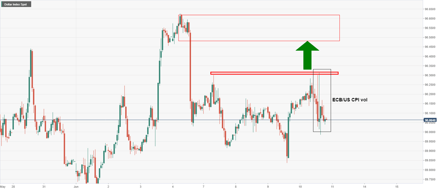 The greenback switched from bullish pre-US Consumer Price Index data, edging higher for a third straight day the highest level since Monday at around 90.30, to bearish post the event.