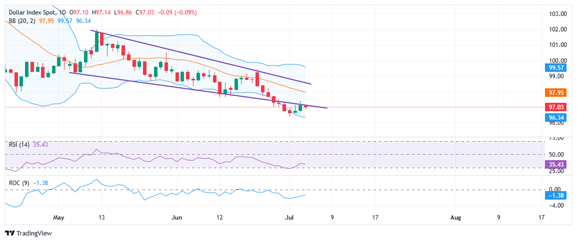 DXY Technical outlook: Wedge breakdown holds as US Dollar fails to reclaim 97.00