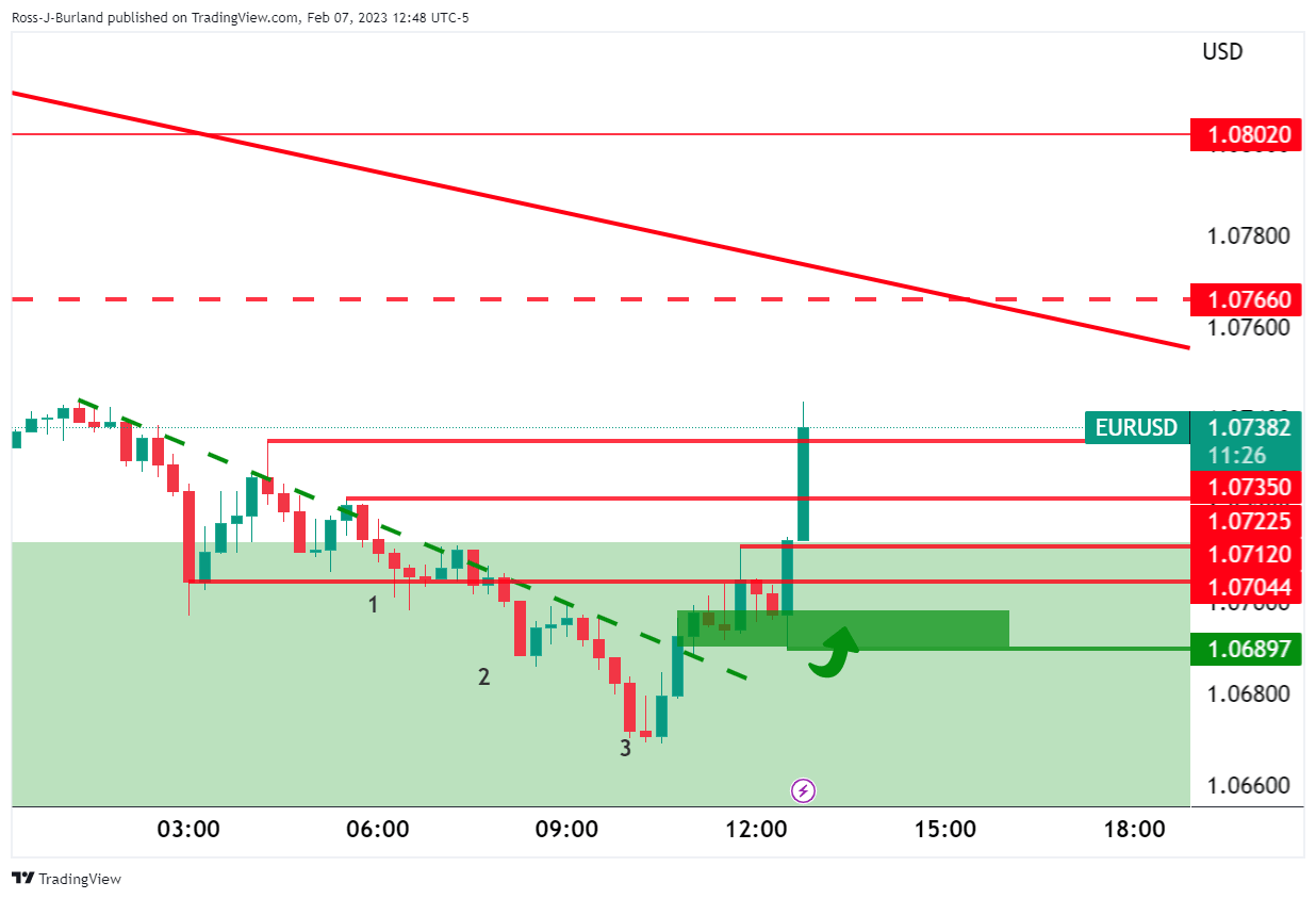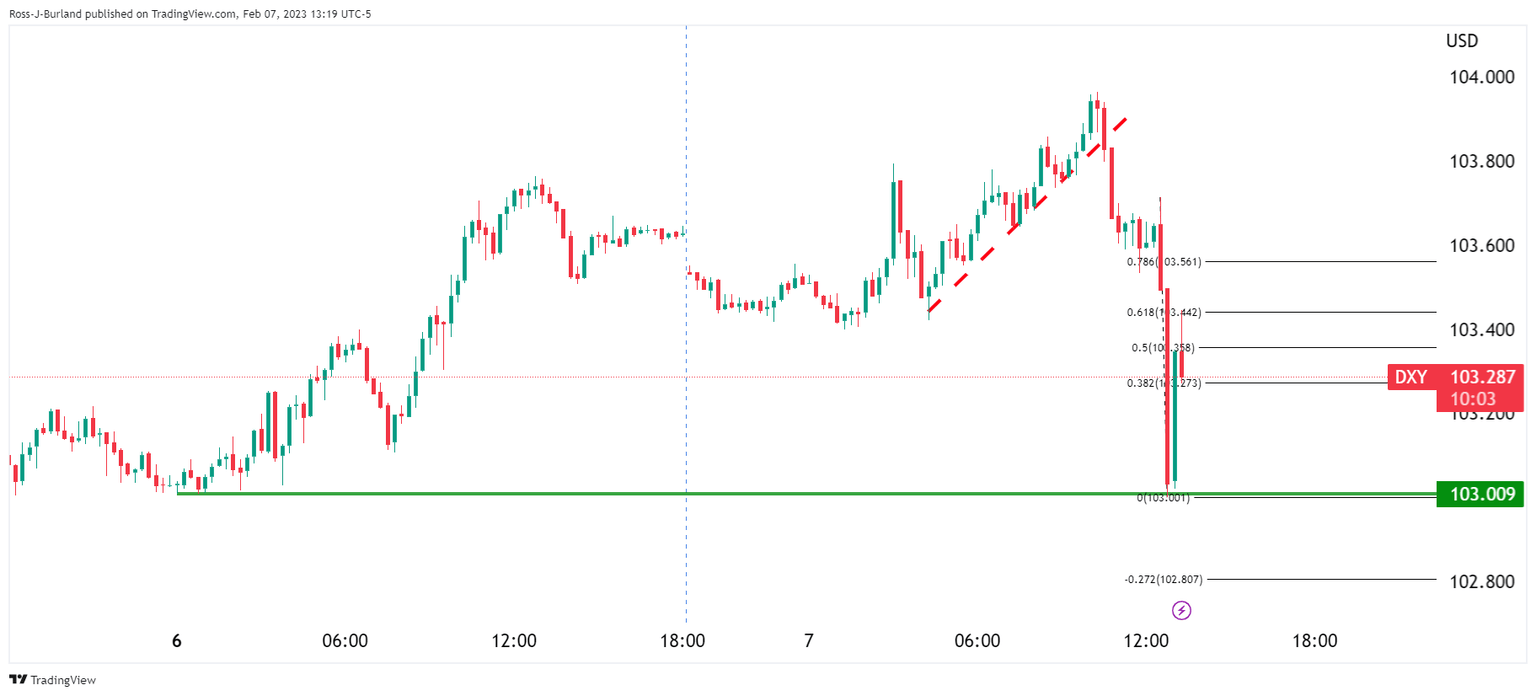 This is a 61.8% ratio retracement in the DXY index and a firm one at that with support at 103.00 holding steadfast. The longs were cleared out, but this could be seen as a discount to the most bullish of the US Dollar bulls.