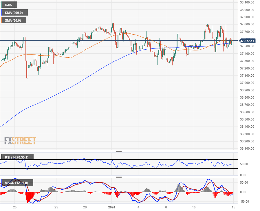 The DJIA remains trapped in near-term consolidation, trading into familiar levels that have plagued the major equity index since climbing to record highs in December. A hard ceiling has been priced into intraday charts from $37,800.00 as intraday price action trades back into the 200-hour Simple Moving Average (SMA) just above $37,500.00.