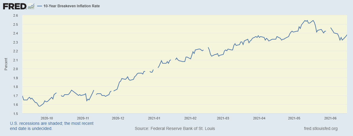 New York Fed Survey of Consumer Expectations for one year jumped to the record high in May, around 4.0%, whereas the poll results of three-year ahead expected inflation rate jumped to the late 2013 levels while flashing 3.6% mark.