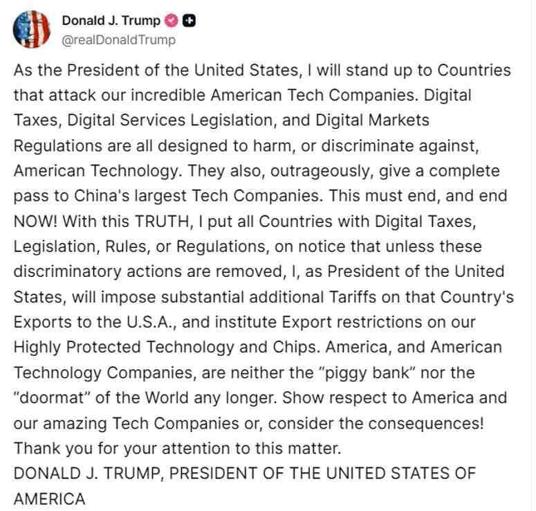 US President Donald Trump threatens export curbs, tariffs in digital tax retaliation