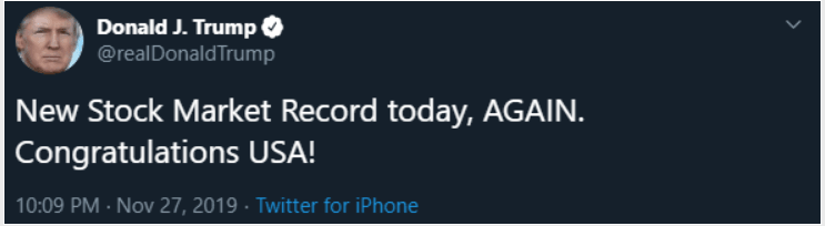 President Trump tweets, "New Stock Market Record today, AGAIN. Congratulations USA!