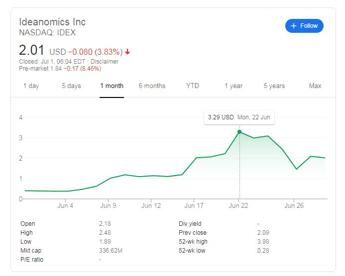 NASDAQ: IDEX has also enjoyed an upward trajectory, surging from a penny stock status early last month to a peak of $3.98. However, it has been under pressure from short-sellers in recent days. Several investors raised suspicions that the firm is in dire financial straits, triggering a denial from Ideanomics.