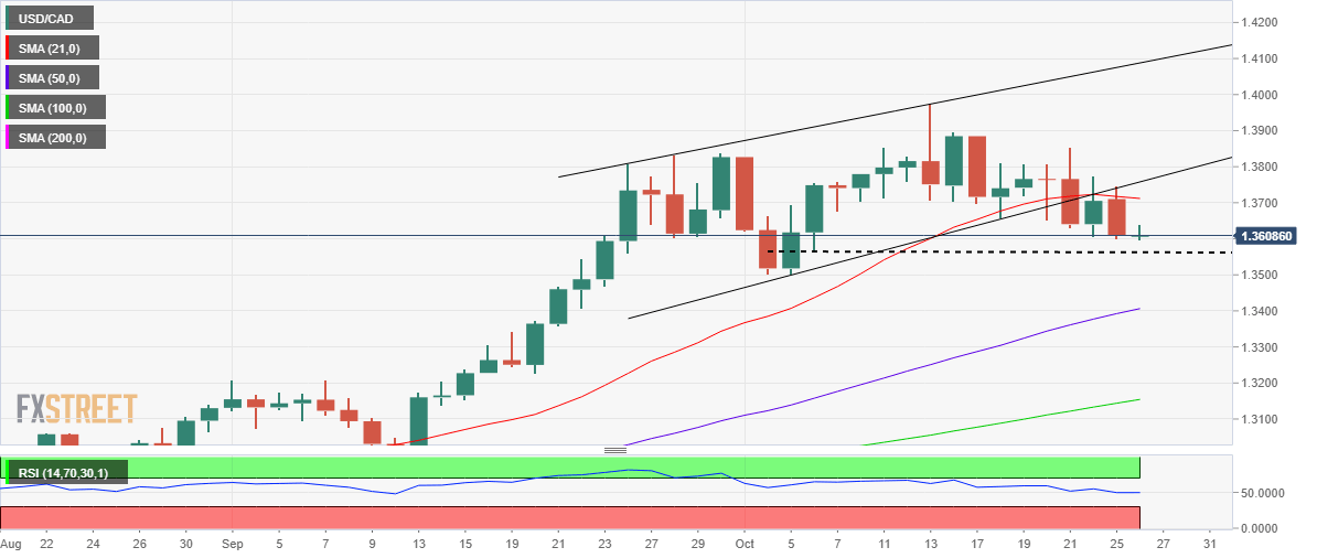 USD/CAD battles 1.3600 as bears stay in control ahead of BOC