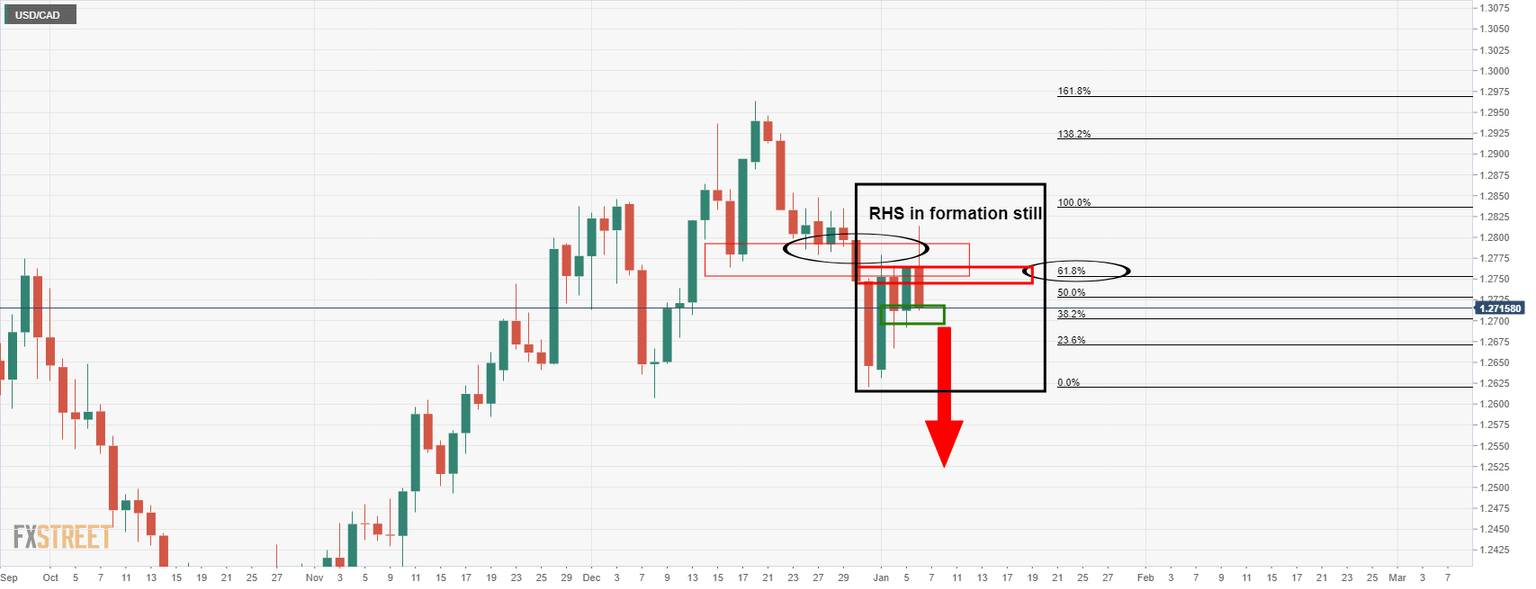 - USD/CAD bears are in control and eye a significant downside breakout.