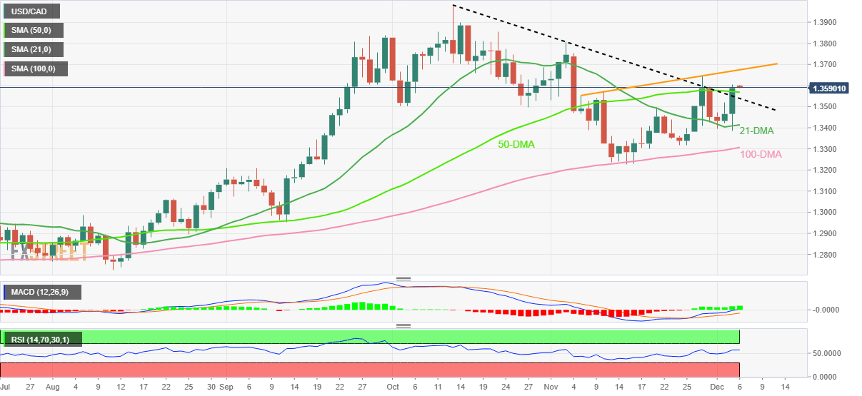 USD/CAD seesaws around a one-week high as bulls flirt with the 1.3600 threshold following a solid run-up to cross the previous vital resistances. That said, the Loonie pair’s latest moves appear less lucrative for sellers as the quote stays beyond important resistance-turned-support, and the US Dollar bulls are back to the table early Tuesday.