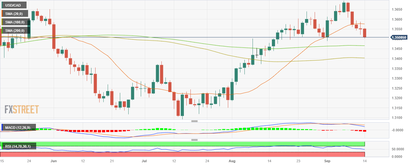 - USD/CAD tallied its fifth day in a row of losses of 1.3515.
