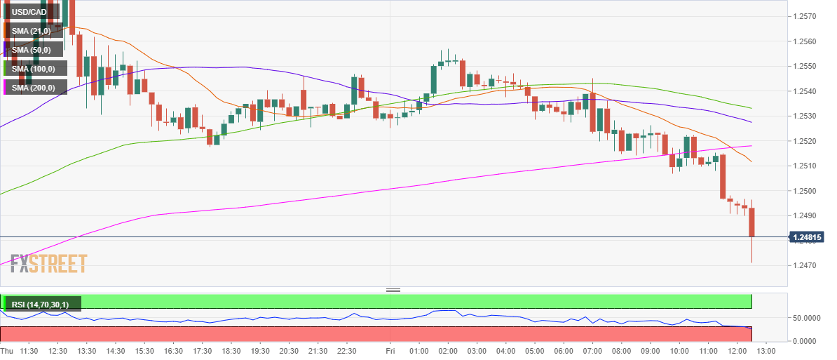 USD/CAD drops towards 1.2450 as Canada adds 230.7K jobs in June
