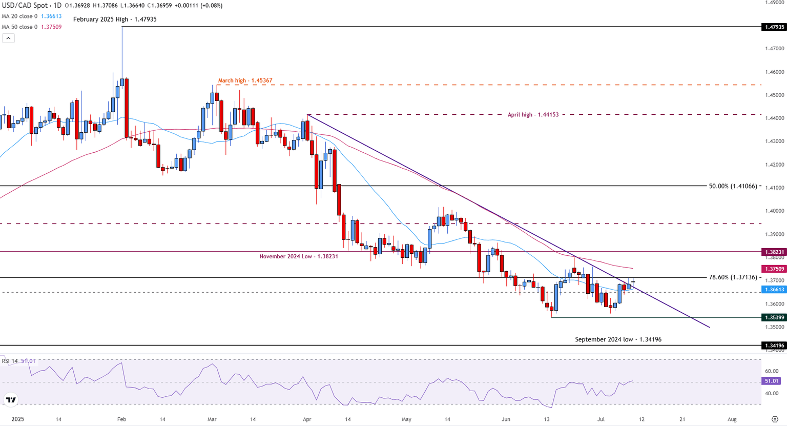 - USD/CAD remains vulnerable as markets digest the latest round of tariff announcements and stalled US-Canadian trade talks.