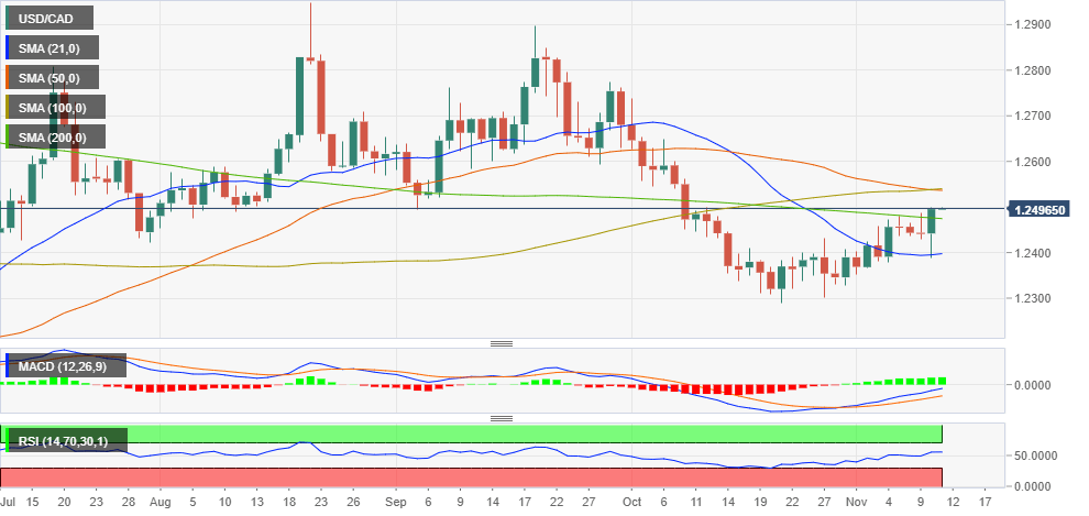 USD/CAD weakened to trade around 1.2540, near to levels not seen since October 11 amid a stronger US dollar and lower oil prices. DXY, an index that measures the greenback vs a basket of major rivals, gained ground towards a one-year high after data on US consumer inflation showed that prices soared 6.2% in October. The US Consumer Price Index came in above market expectations and was the highest annual increase since 1990. The outcome has reinforced market bets that a rate hike in the US might come earlier.