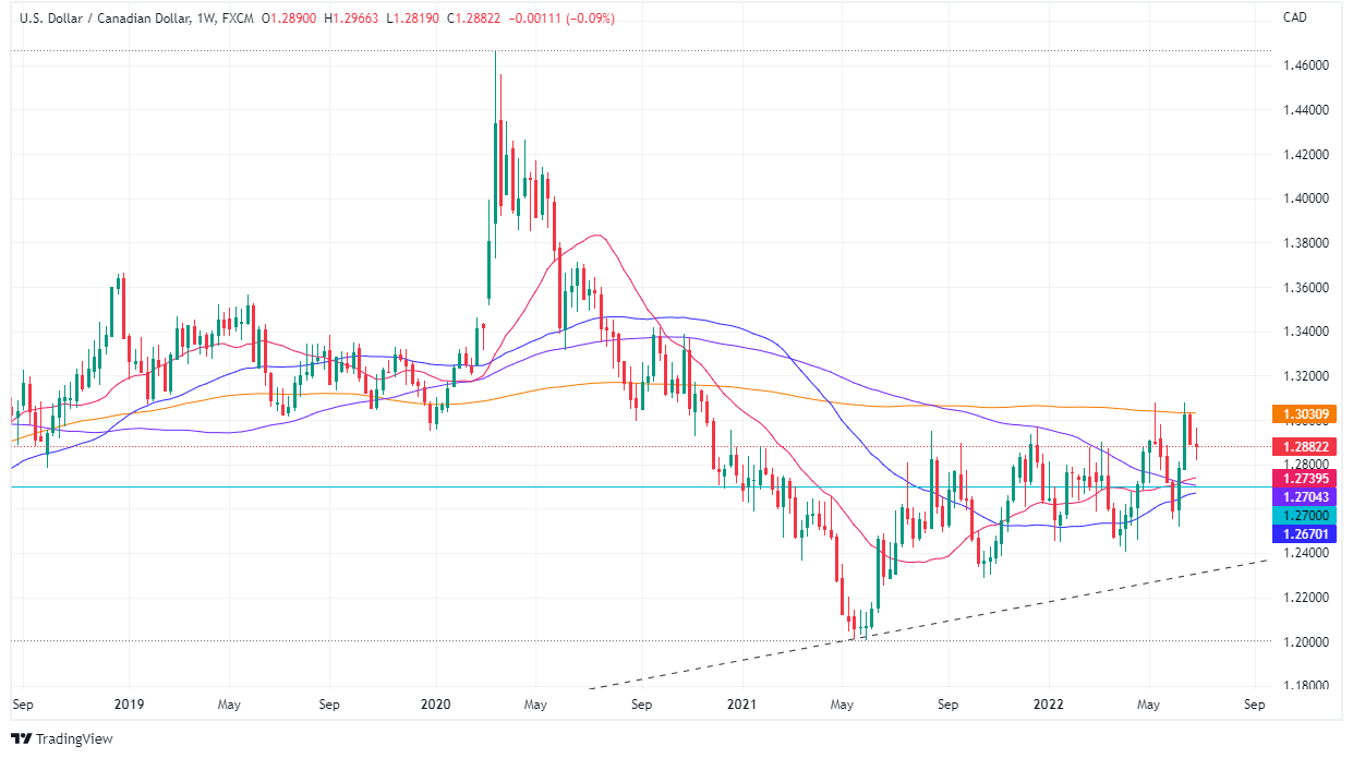 The USD/CAD pares some of Thursday’s losses after reaching a weekly high of around 1.2960s but retraced below 1.2900 as the greenback weakened ahead into a long weekend, courtesy of the US Independence day. At 1.2882, the USD/CAD records minimal gains of 0.08% and finishes the week with losses of 0.09%.