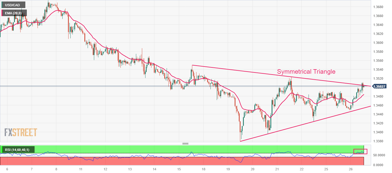 - USD/CAD prints a fresh two-day high nominally above 1.3500 as the US Dollar resumes its upside journey.