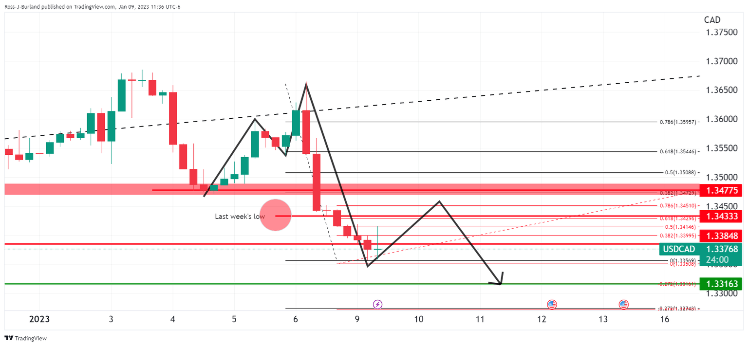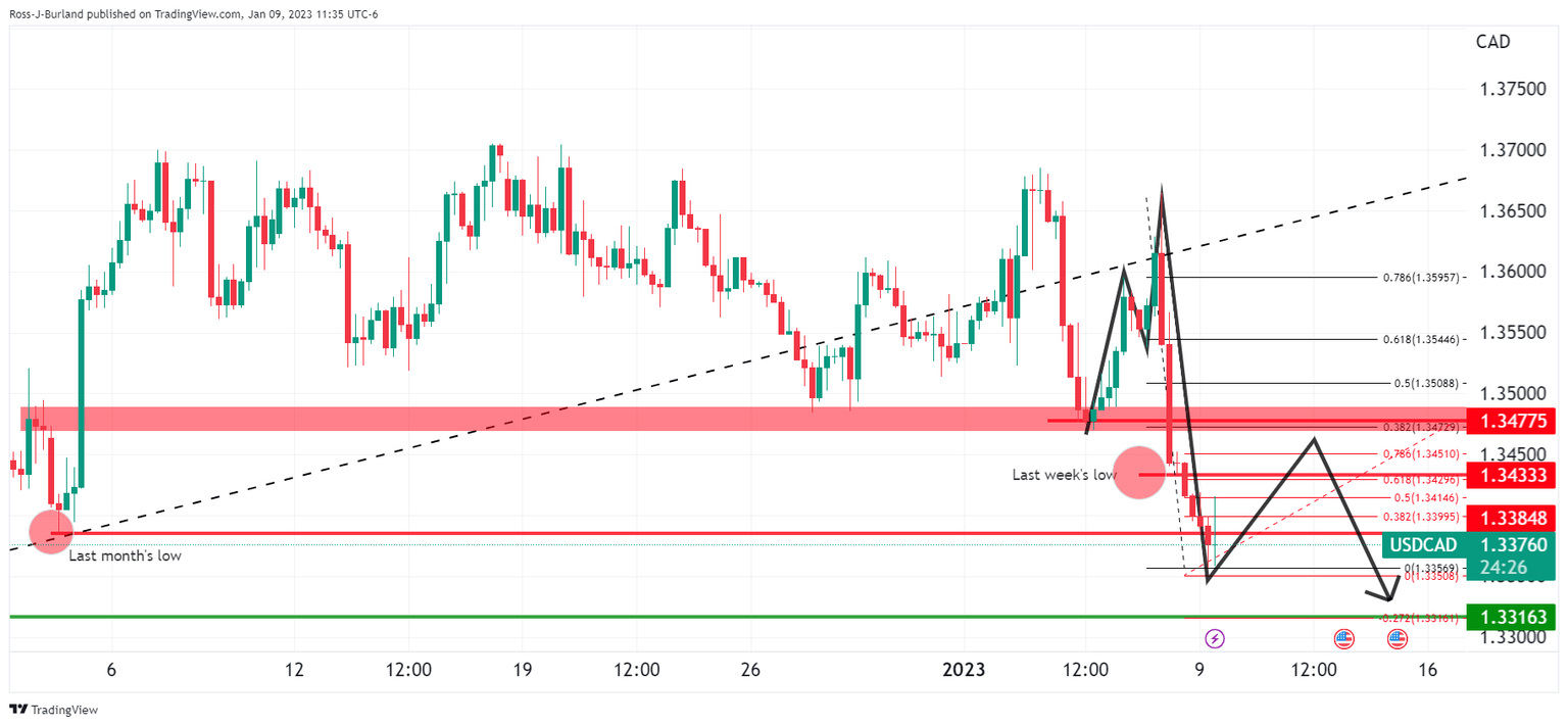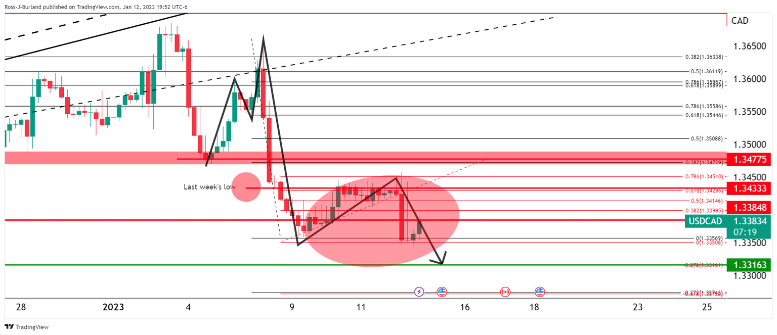USD/CAD is under pressure following the US Consumer Price Index outcome and a rally in the oil price. As per the prior analysis, USD/CAD bears take out last month's low, but bulls could emerge, where the M-formation supported a meanwhile bullish thesis at the start of the week to pull in bulls only to shake them out for a mid-week setup, the price action has played out as follows: