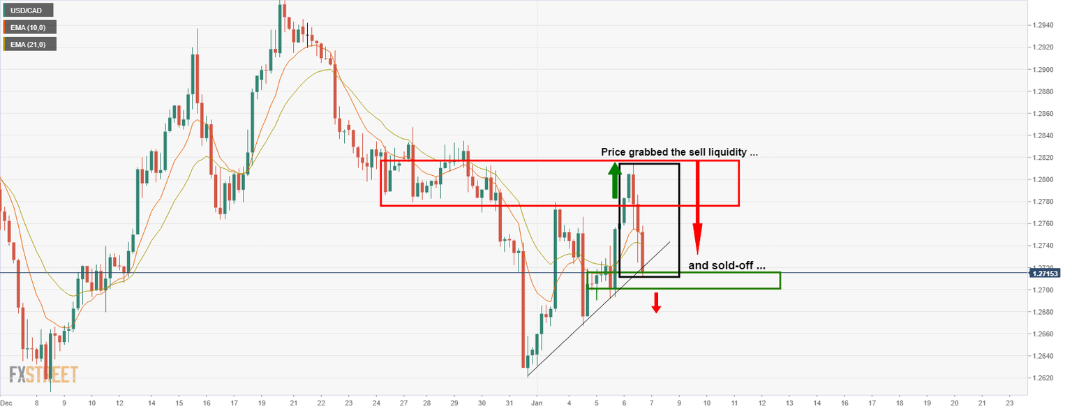 As illustrated above, the price ran into the sell stops above the prior highs and into a high volume area where the sellers took back control as a discount, as per the title of the prior analysis: (USD/CAD Price Analysis: Bears line up for their discounts).
