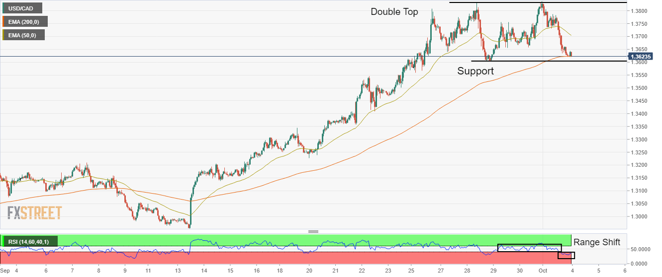 USD/CAD Price Analysis: Bears poke 200-EMA above 1.3600, Double Top sets to activate