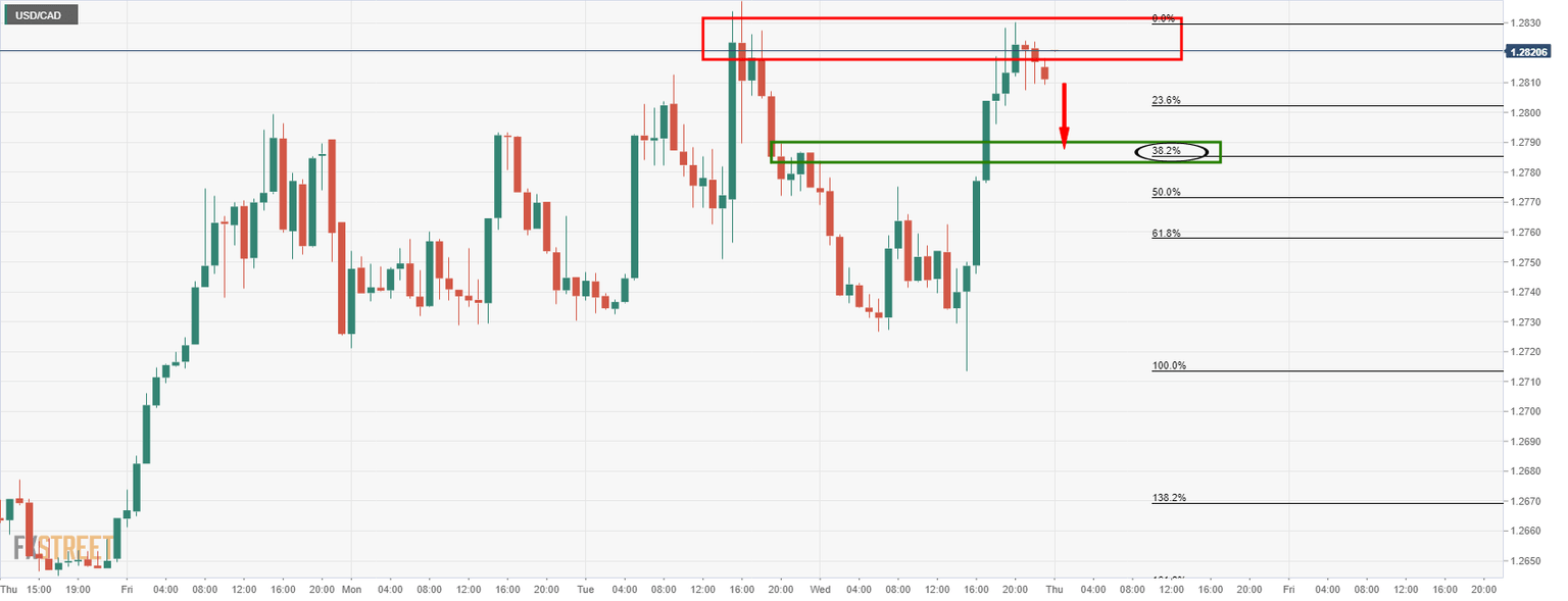 - USD/CAD is on the verge of a 38.2% Fibonacci correciton.