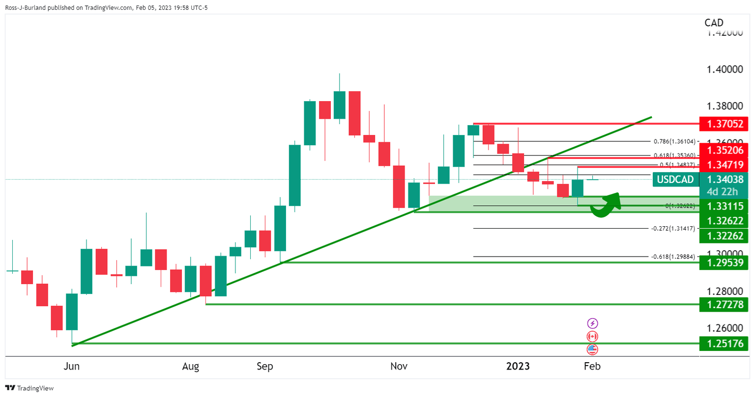 USD/CAD Price Analysis: Bears take on key support structures, but bulls are lurking