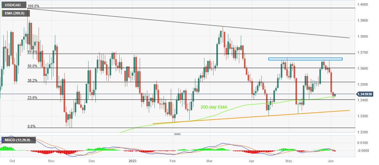 USD/CAD Price Analysis: Bounces off 200-EMA as bulls eye 1.3450