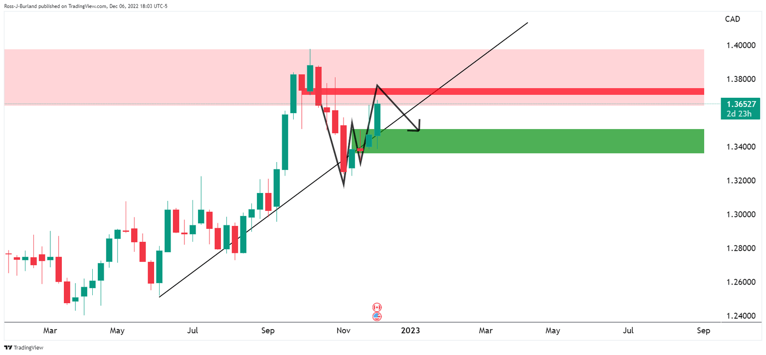 - USD/CAD is making moves to the upside, but bears are lurking.