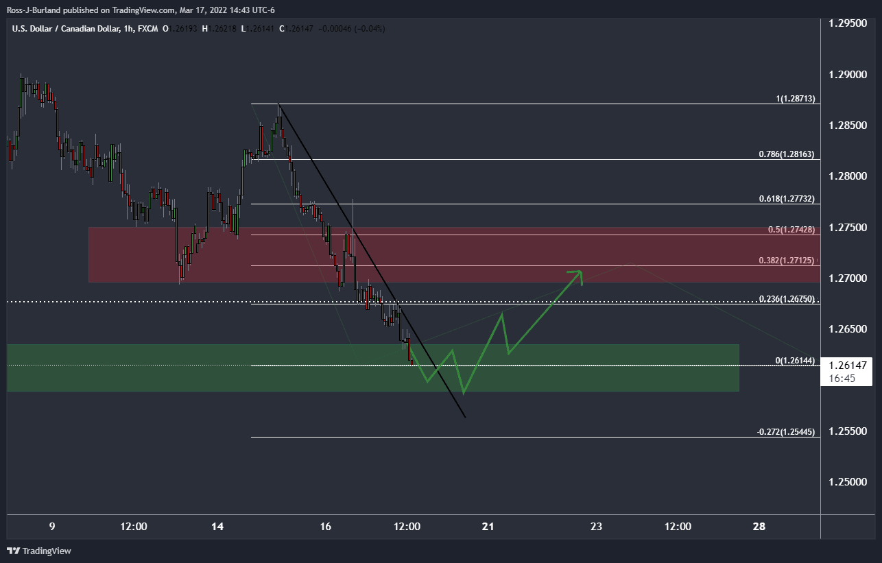 The hourly chart offers a compelling outlook as well. There are still prospects of lower levels at this juncture for the momentum remains with the bears so far. However, the moment this slows and the trajectory decelerates, traders can be on the lookout for a kindred schematic in the price action as illustrated above.