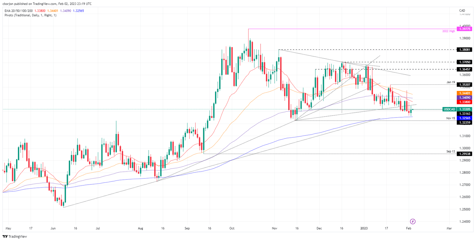 USD/CAD Price Analysis: Buyers stepped at around the 200-DMA, lifting the pair back above 1.3300