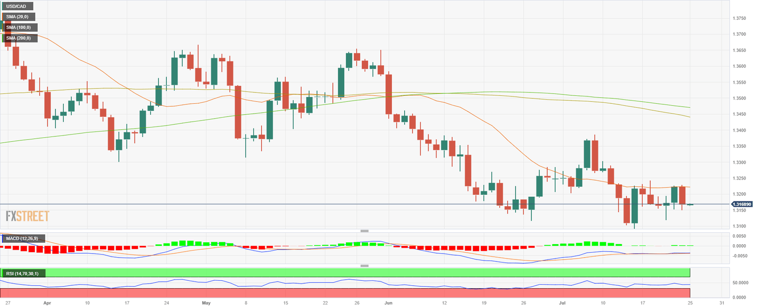 - USD/CAD fell towards 1.3170 as the bulls failed to reconquer the 20-day SMA.