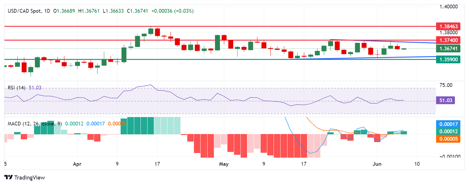 USD/CAD Price Analysis: Consolidates around 1.3650 within a horizontal channel
