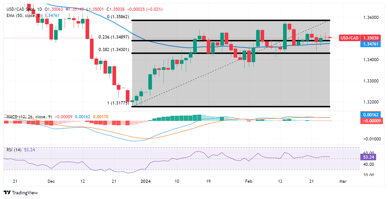 USD/CAD Price Analysis: Depreciates to near 1.3500 followed by 23.6% Fibonacci