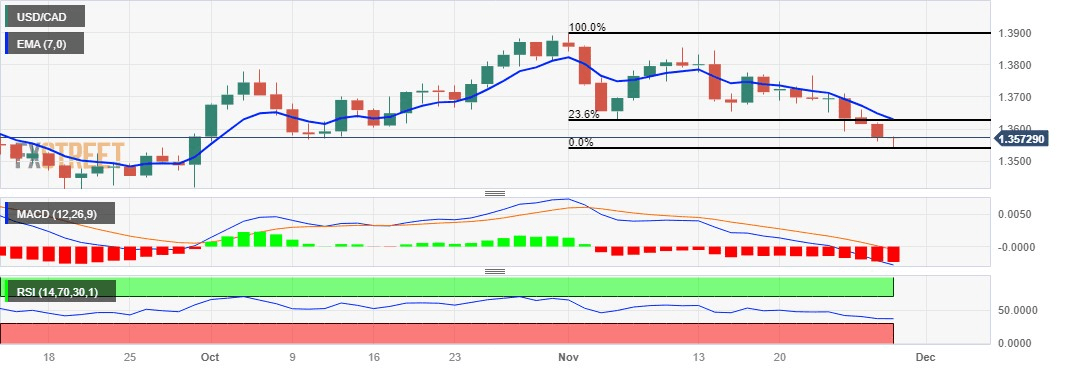 On the upside, if the USD/CAD pair surpasses the psychological barrier of 1.3600, it could reach the 23.6% Fibonacci retracement at 1.3625 and seven-day Exponential Moving Average (EMA) at the 1.3628 level. A breakthrough above the resistance area could open the doors for the USD/CAD pair to explore the region around the 1.3650 level.