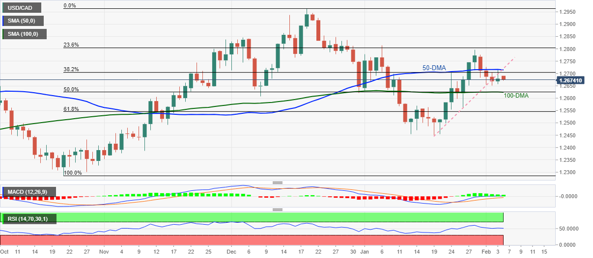 USD/CAD remains pressured around 1.2680 during Friday’s Asian session, following the previous day’s U-turn from 50-DMA.