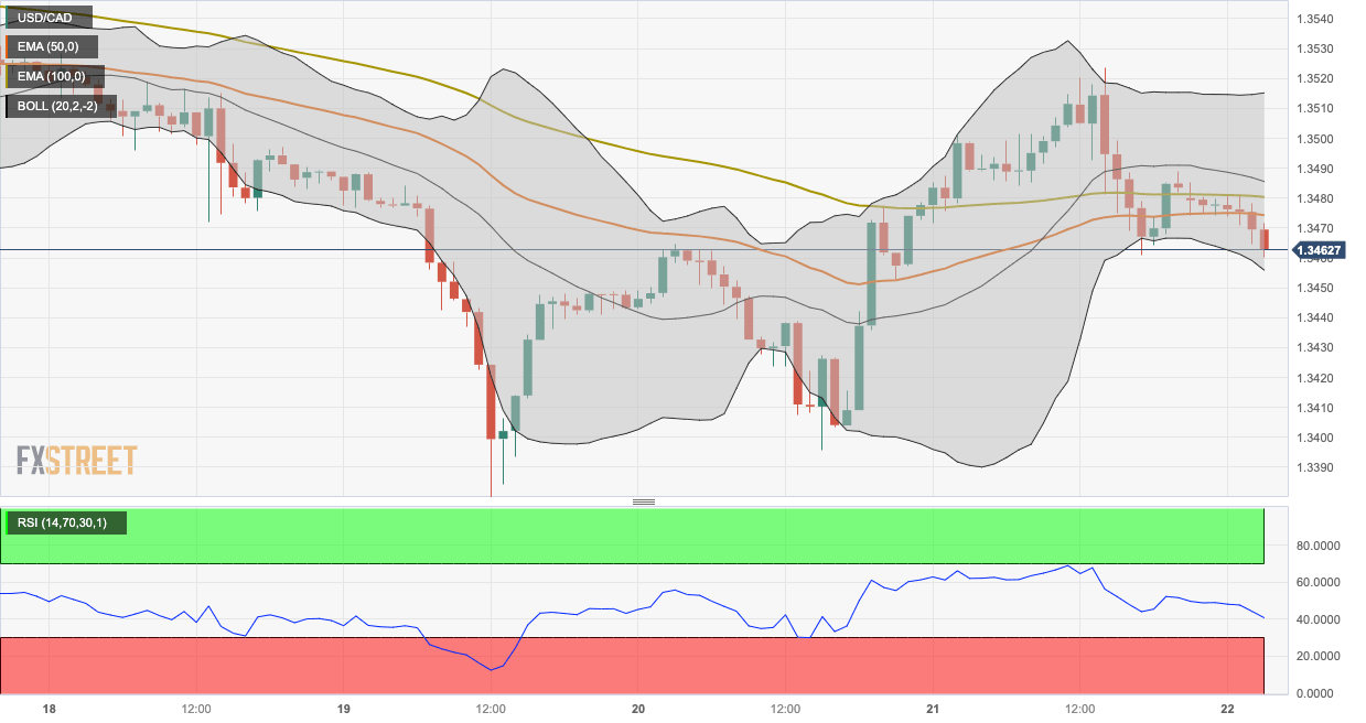 According to the one-hour chart, USD/CAD holds below the 50- and 100-hour Exponential Moving Averages (EMAs), which supports the sellers for the time being. Meanwhile, the Relative Strength Index (RSI) stands below 50, activating the bearish momentum for the USD/CAD pair.