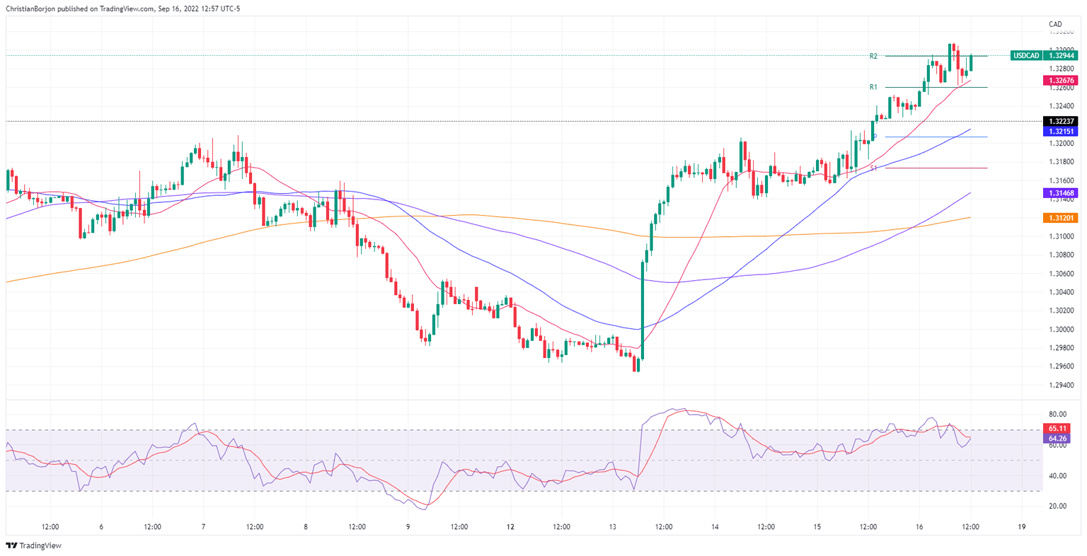 The USD/CAD rallied to a nearly two-year high at around 1.3307, a level last seen in November 2020, spurred by a risk-off impulse as investors worried about an aggressive Federal Reserve hike that could tap the US economy into a recession. At the time of writing, the USD/CAD is trading at 1.3293, above its opening price by 0.51%.