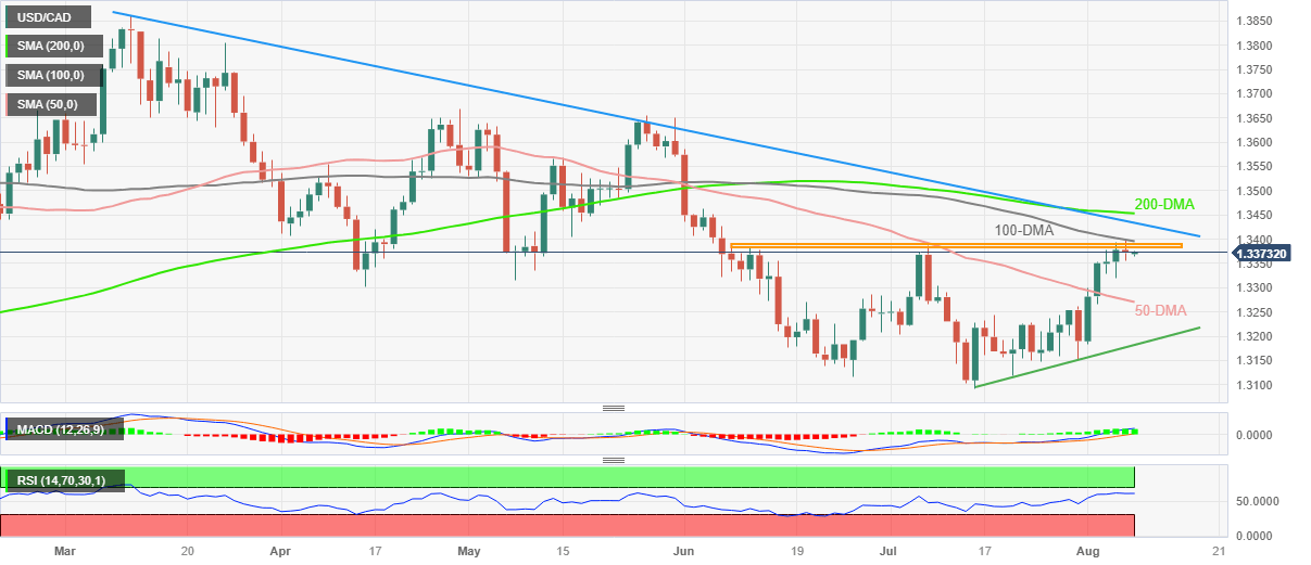USD/CAD Price Analysis: Retreats from 100-DMA surrounding 1.3400 but stays on bull’s radar