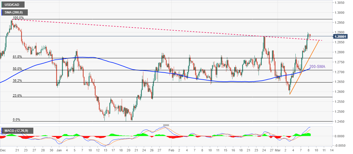 Alternatively, USD/CAD buyers need to conquer the 1.2900 round figure to retake control.